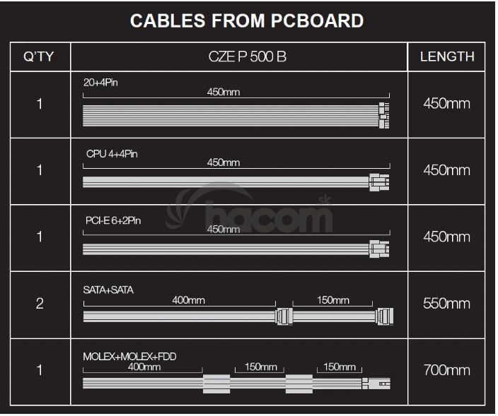 12cm ventilátor s reguláciou otáčok, pasívny PFC, 4xSATA, 1x PCIe 6, čierny, balenie bez krabičky.Tichý napájací zdroj štandard ATX 2.2, pasívny PFC, 4x SATA konektor.