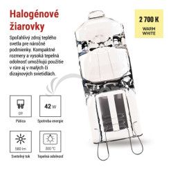 - Halogénová žiarovka JC 42W G9 teplá biela 300 °C ZE0306