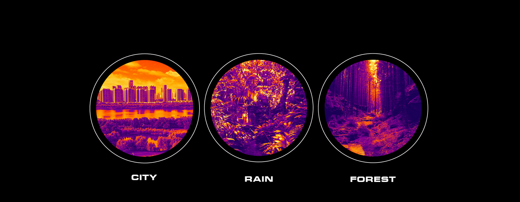 Harrier 640 LRF ponúka tri scénické režimy - City, Rain a Forest. Vďaka nim je možné obraz ľahko prispôsobiť prostrediu a získať tak optimálnu viditeľnosť aj v náročných podmienkach.