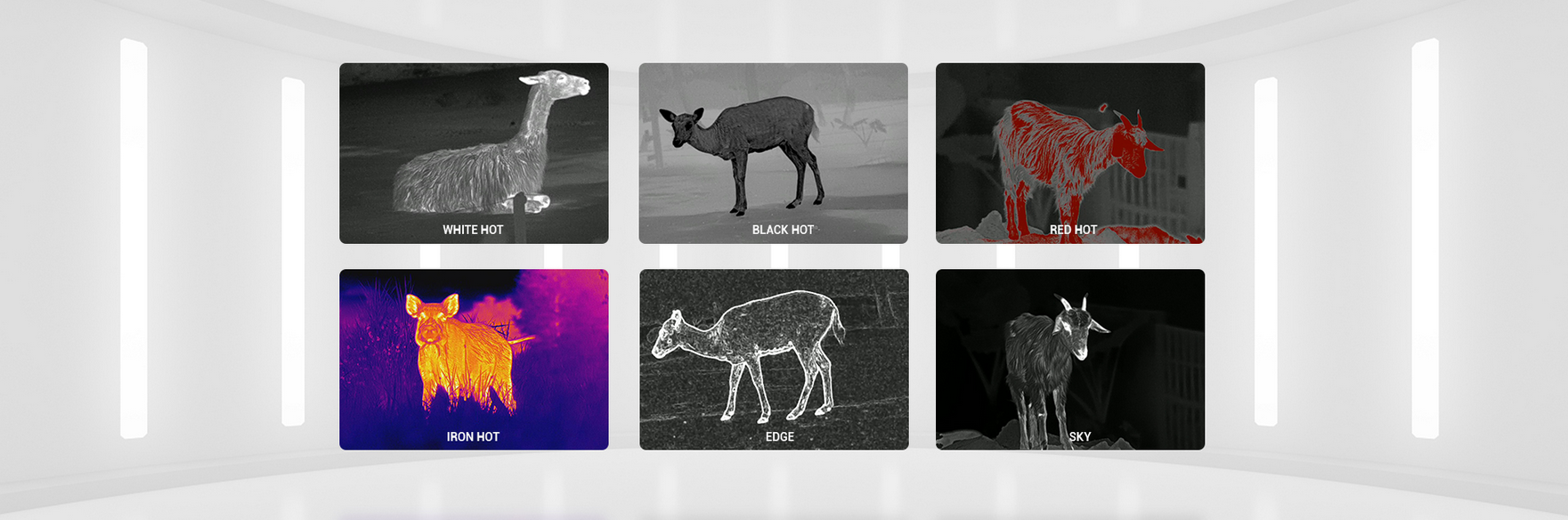 Harrier 640 LRF podporuje šesť obrazových režimov - White Hot, Black Hot, Red Hot, Iron Hot, Edge a Sky. Vďaka tejto voľbe si každý používateľ môže prispôsobiť zobrazenie podľa svojich preferencií a aktuálnych podmienok.