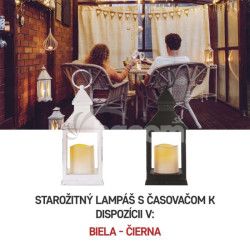 - LED dekorácia – lampáš antik biela blikajúca, 3x AAA, vnútorný, vintage, časovač DCLV01