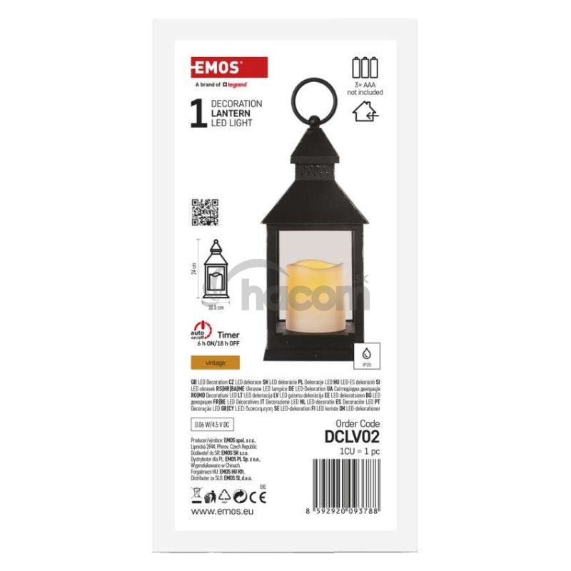LED dekorácia – lampáš antik čierna blikajúca, 3x AAA, vnútorný, vintage, časovač DCLV02