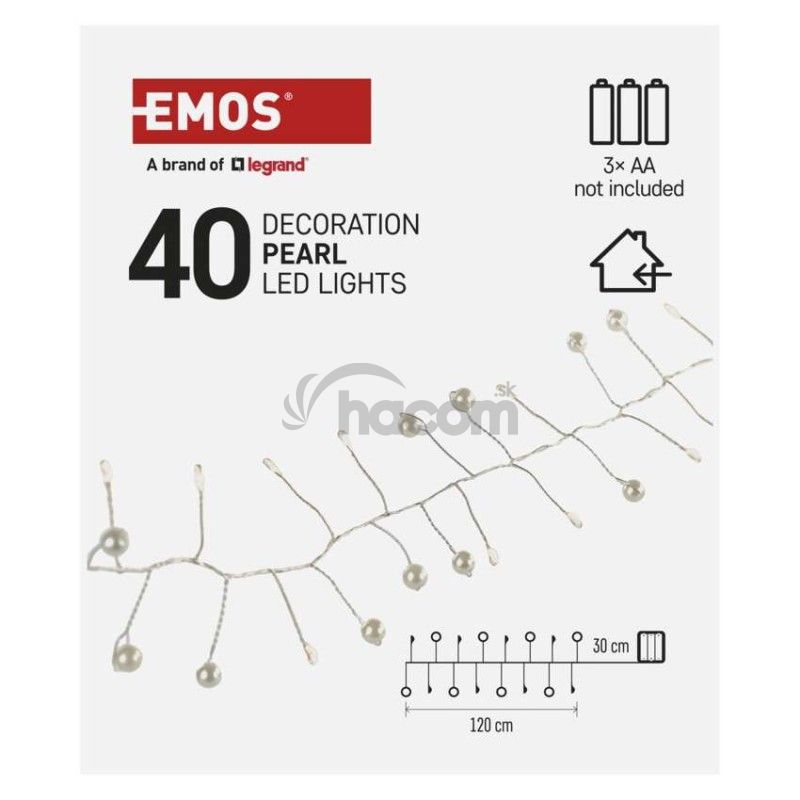 - LED girlanda - perly, 1,2 m, 3x AA, vnútorné, teplá biela, časovač DCGW15