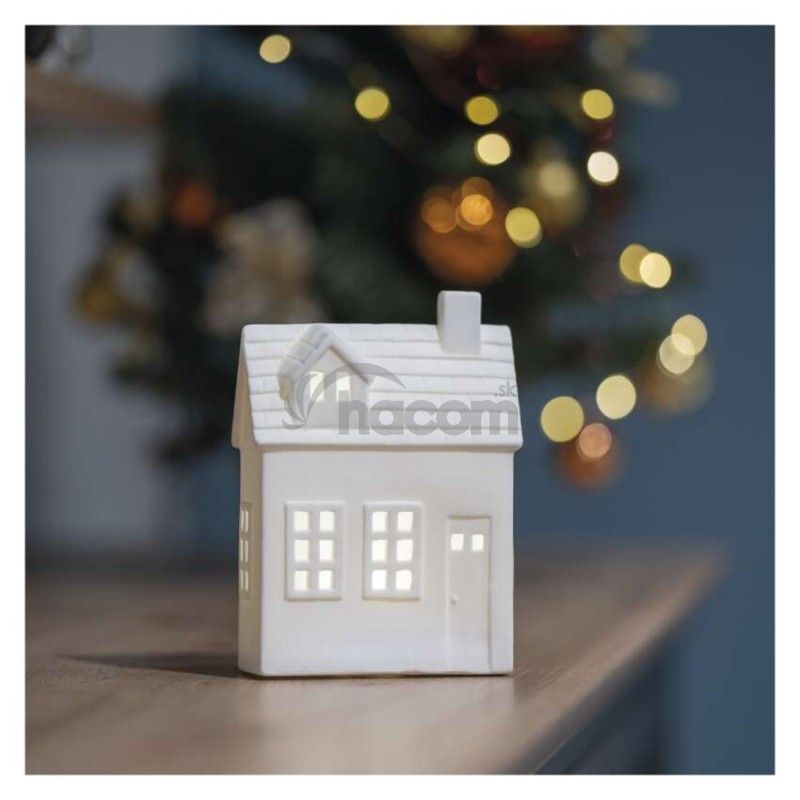 LED keramický domček, 18 cm, 1x CR2032, vnútorná, teplá biela, časovač DCLW37