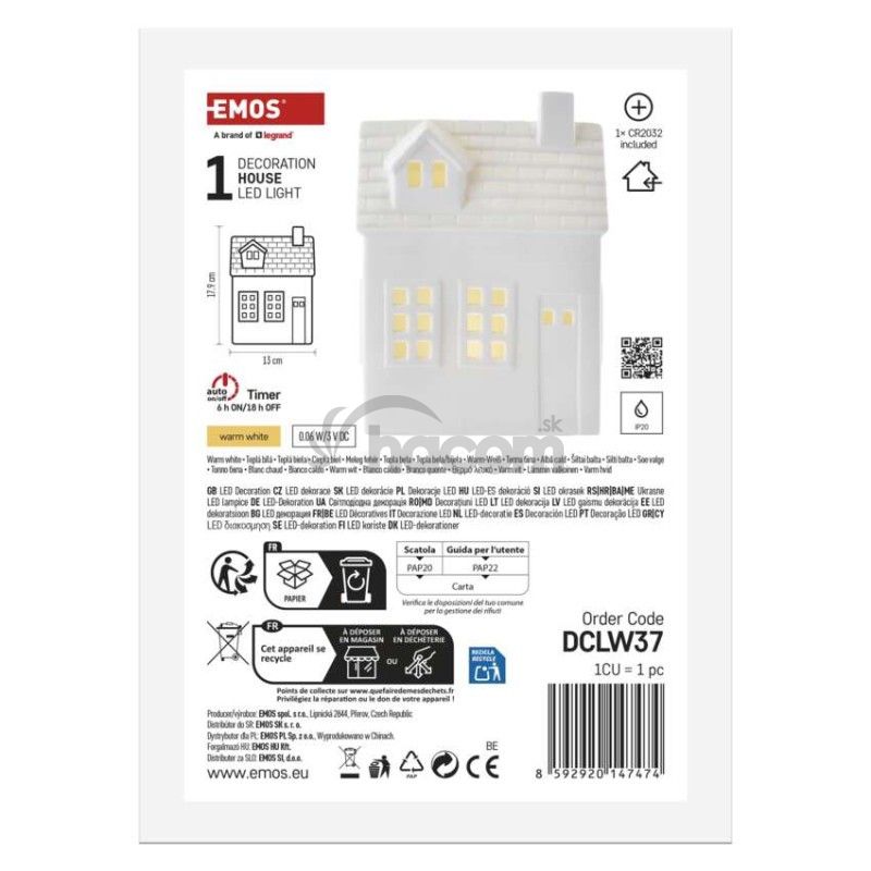 - LED keramický domček, 18 cm, 1x CR2032, vnútorná, teplá biela, časovač DCLW37