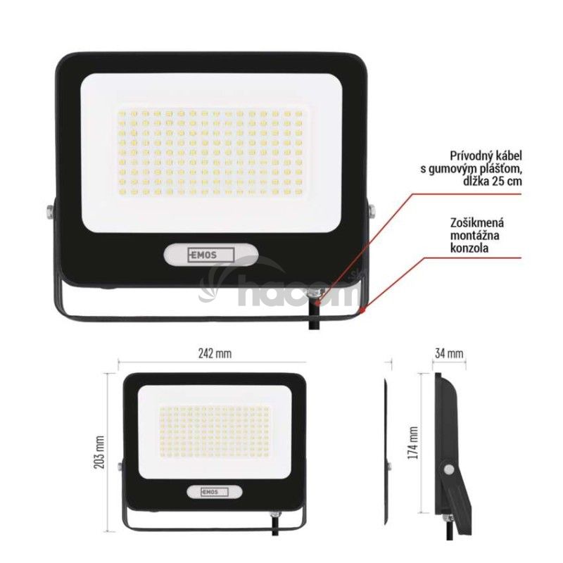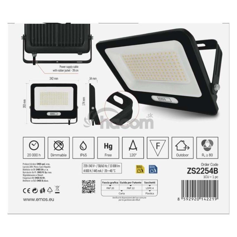 - LED reflektor GLARO 100W, čierny, IP65, 10000 lm, neutrálna biela ZS2254B