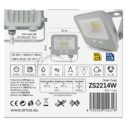 - LED reflektor GLARO 10W, biely, IP65, 1000 lm, neutrálna biela ZS2214W