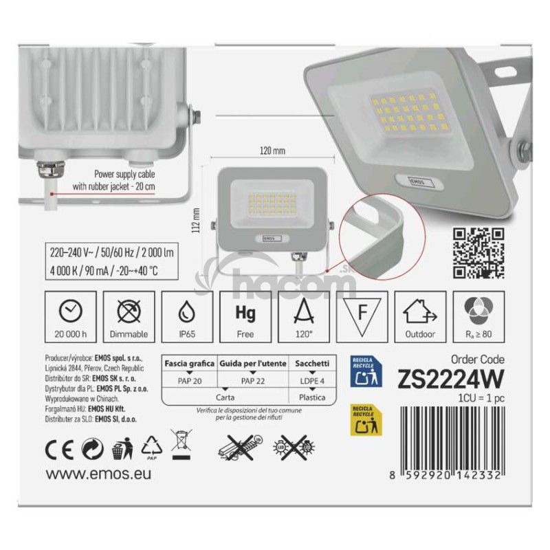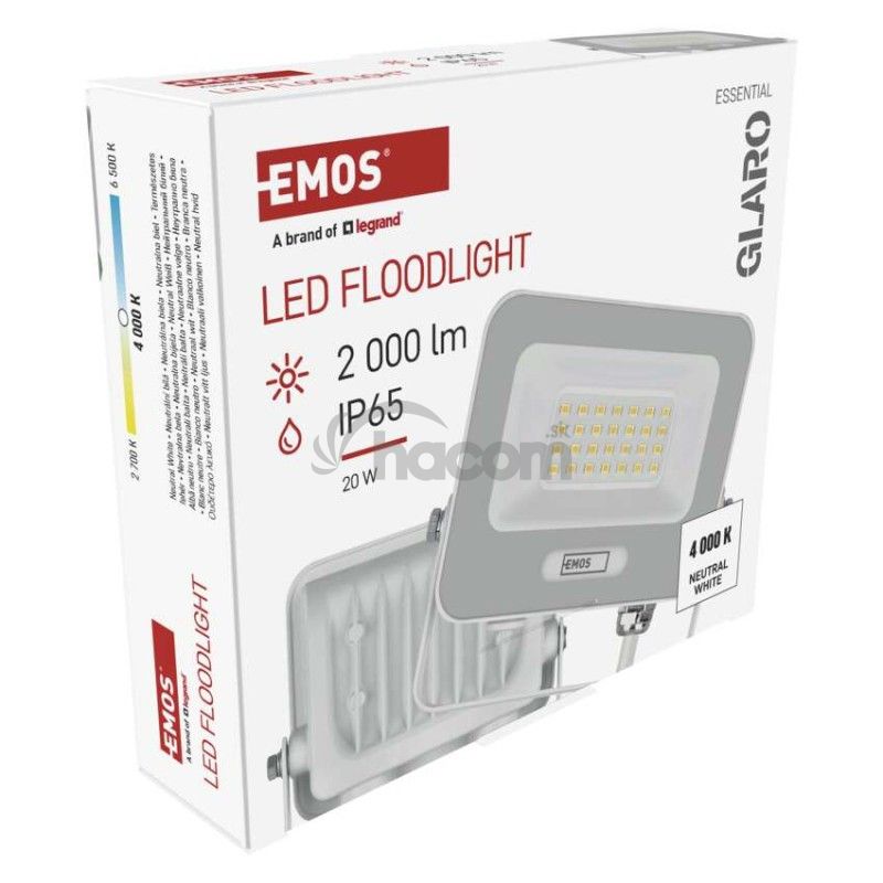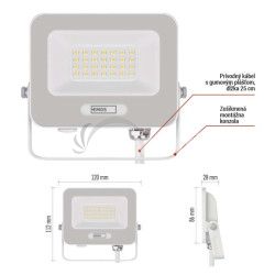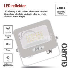 - LED reflektor GLARO 20W, biely, IP65, 2000 lm, neutrálna biela ZS2224W