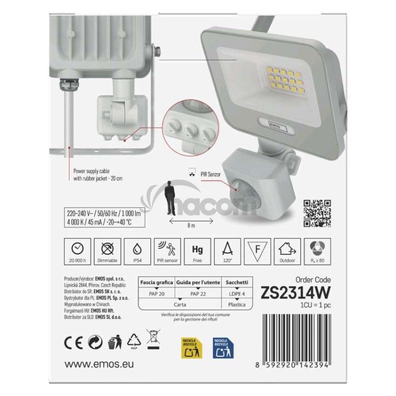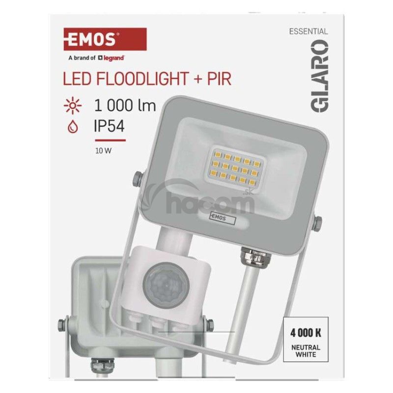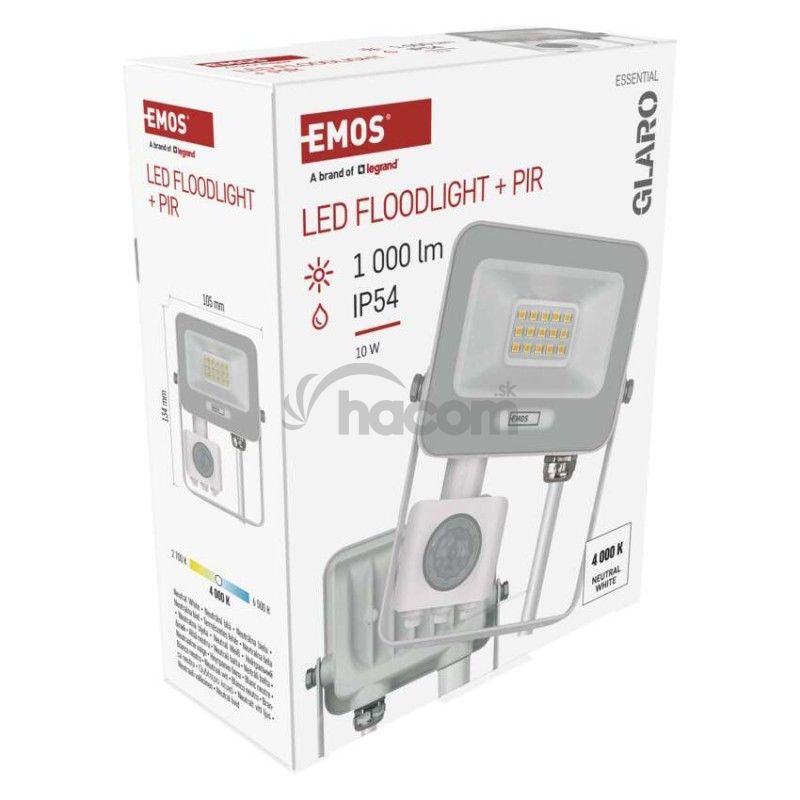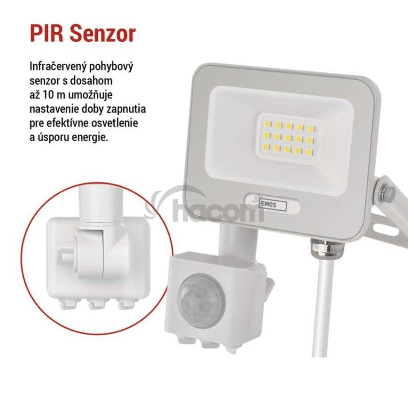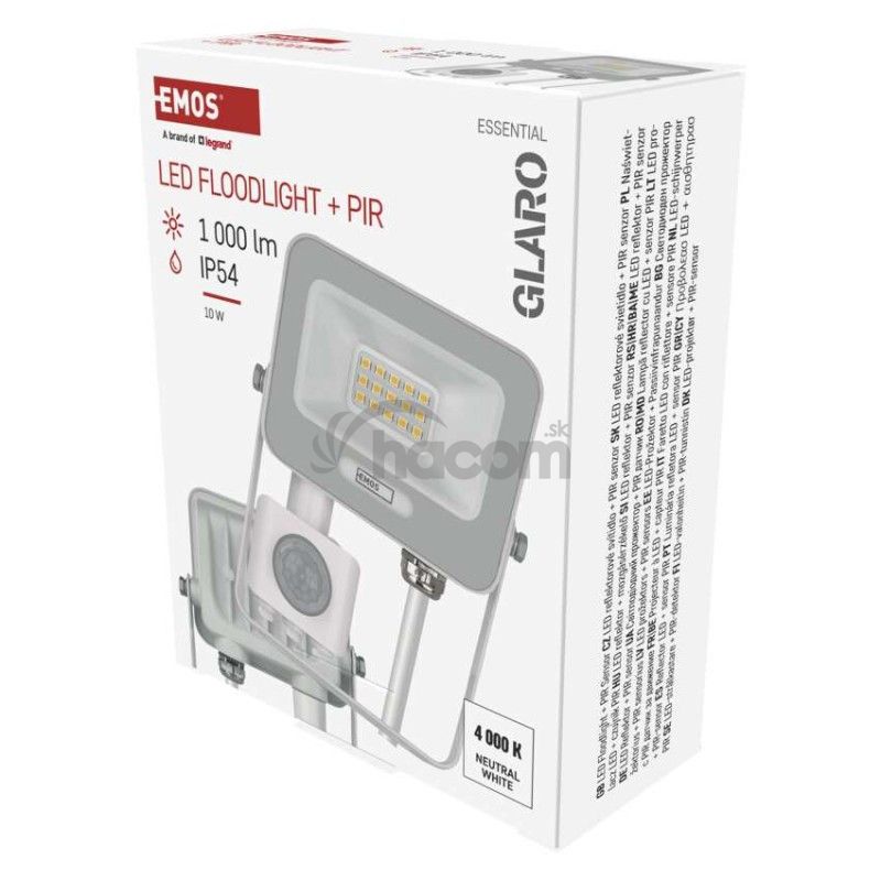 - LED reflektor GLARO s pohybovým čidlom, 10 W, biely, IP54, 1000 lm, neutrálna biela ZS2314W