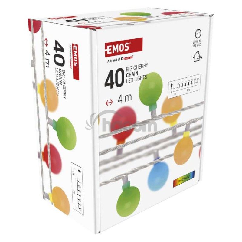 LED svetelná cherry reťaz – guličky 2,5cm, 4m, vonkajšia aj vnútorná, multicolor, časovač D5AM01