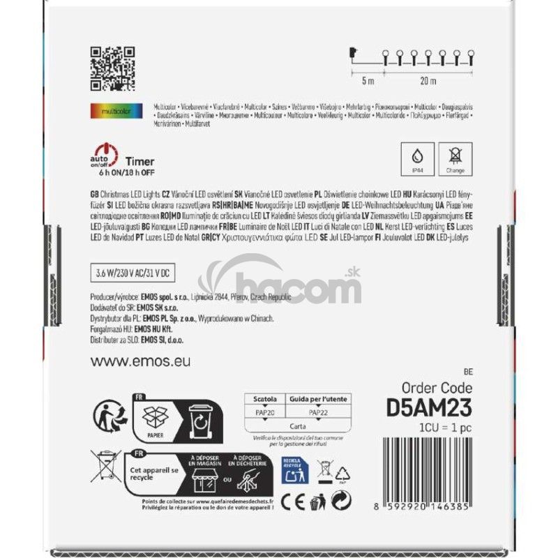 - LED vianočná cherry reťaz – guličky, 20 m, vonk. aj vnútor., multicolor, programy, časovač D5AM23