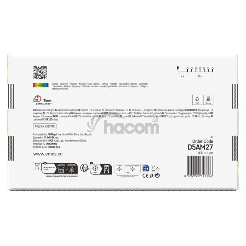 - LED vianočná cherry reťaz – guličky, 48 m, vonk. aj vnútor., multicolor, programy, časovač D5AM27
