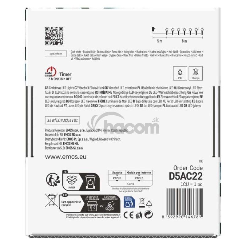 - LED vianočná cherry reťaz – guličky, 8 m, vonkajšia aj vnútorná,st. biela,programy,časovač D5AC22