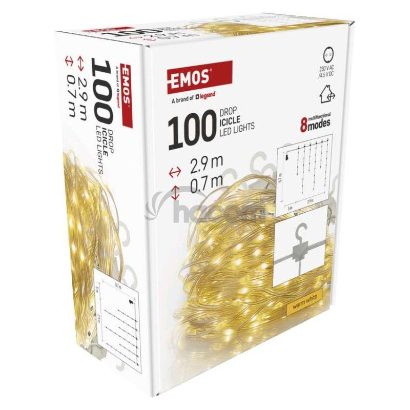 LED vianočná drop reťaz – cencúle, 2,9 m, vonkajšia aj vnútorná, teplá biela, programy D3CW02