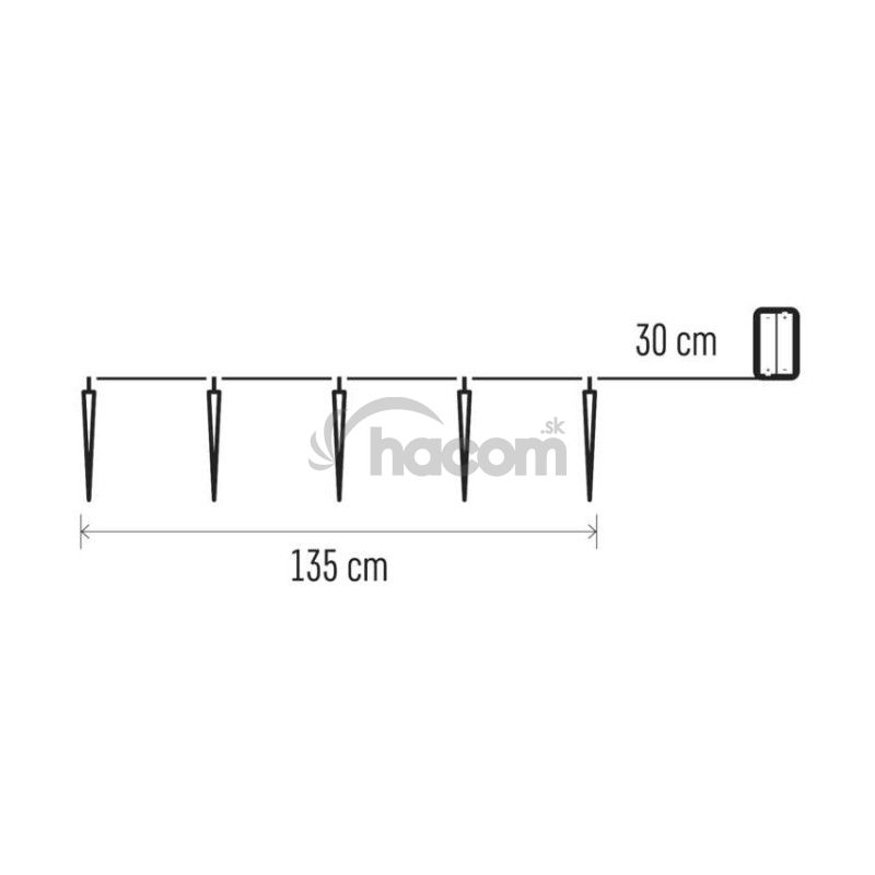 - LED vianočná girlanda – 10x cencúľ, 1,35 m, 2x AA, vnútorná, studená biela, časovač DCGC01