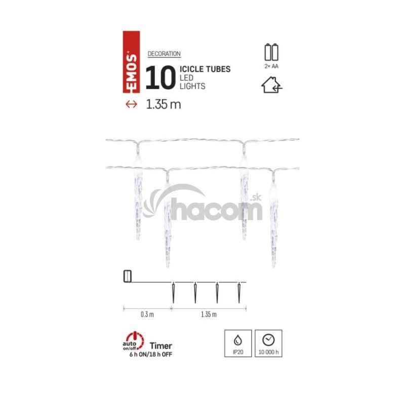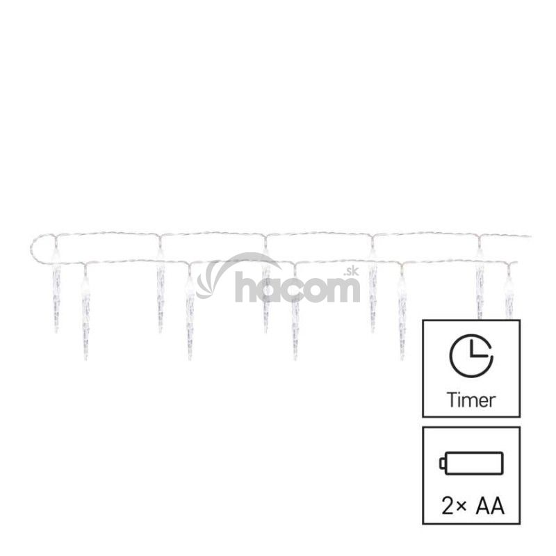 LED vianočná girlanda – 10x cencúľ, 1,35 m, 2x AA, vnútorná, studená biela, časovač DCGC01