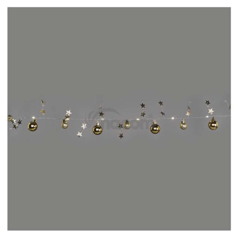- LED vianočná girlanda – zlaté guličky, 1,9 m, 2x AA, vnútorný, teplá biela, časovač DCGW11