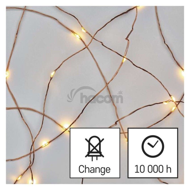 - LED vianočná nano reťaz medená, 0,9 m, 2x AA, vnútorná, teplá biela, časovač D3AW06