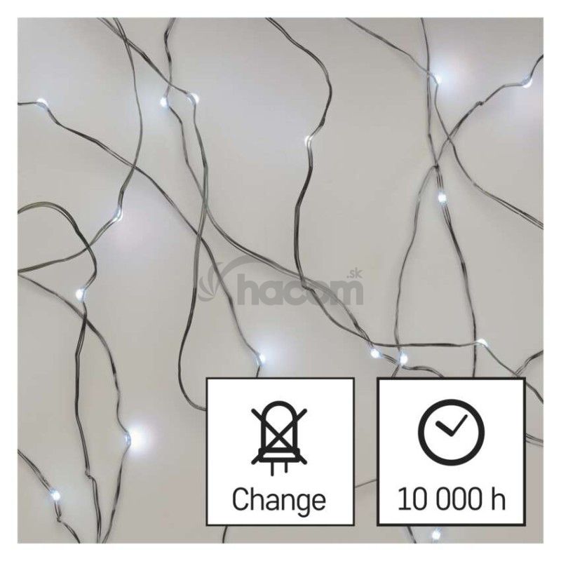 - LED vianočná nano reťaz strieborná, 10 m, vonkajšia aj vnútorná, studená biela, časovač D3AC01