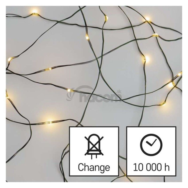 - LED vianočná nano reťaz zelená, 4 m, vonkajšia aj vnútorná, teplá biela, časovač D3AW03
