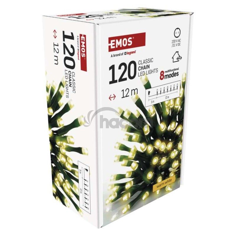 LED vianočná reťaz, 12 m, vonkajšia aj vnútorná, teplá biela, programy, časovač D4AW23