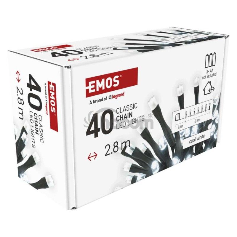 - LED vianočná reťaz, 2,8 m, 3x AA, vonkajšia aj vnútorná, studená biela, časovač D4FC01