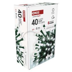 - LED vianočná reťaz, 4 m, vonkajšia aj vnútorná, studená biela, programy, časovač D4AC21