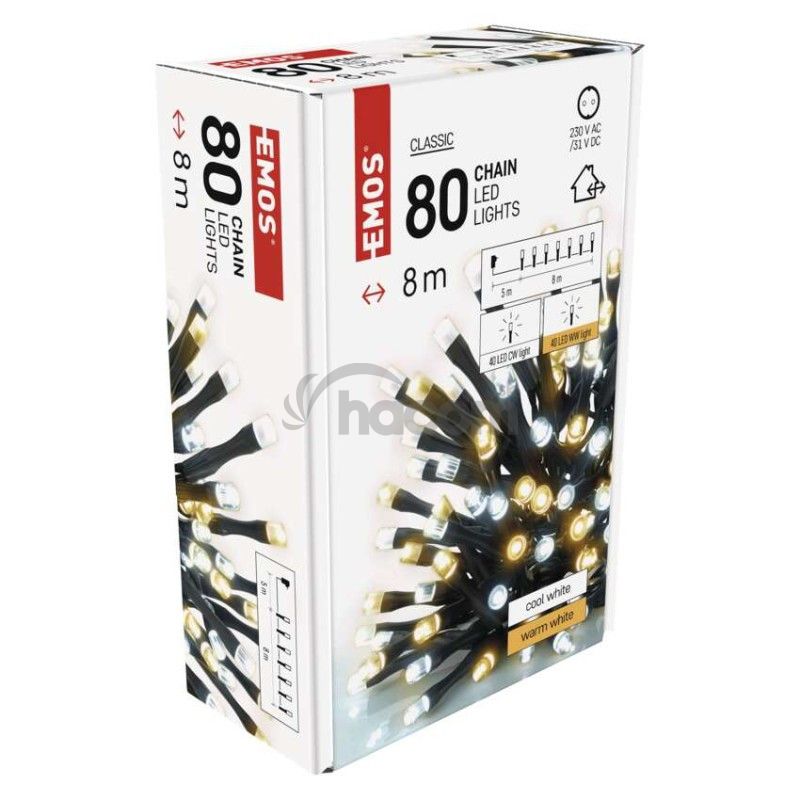 LED vianočná reťaz, 8 m, vonkajšia aj vnútorná, teplá/studená biela, časovač D4AN04