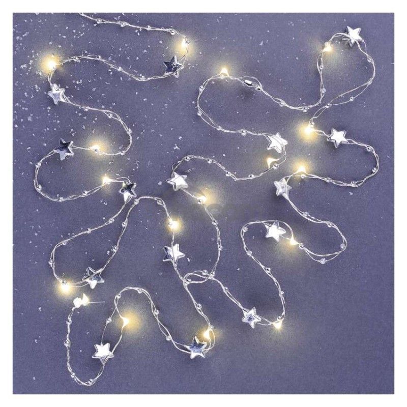 - LED vianočná reťaz strieborný – hviezdičky, 1,9 m, 2x AA, vnútorný, teplá biela, časovač DCGW07