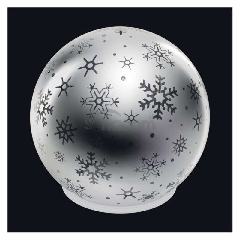 - LED vianočná sklenená guľa – vločky, 12 cm, 3x AA, vnútorný, teplá biela, časovač DCLW28