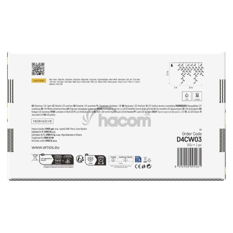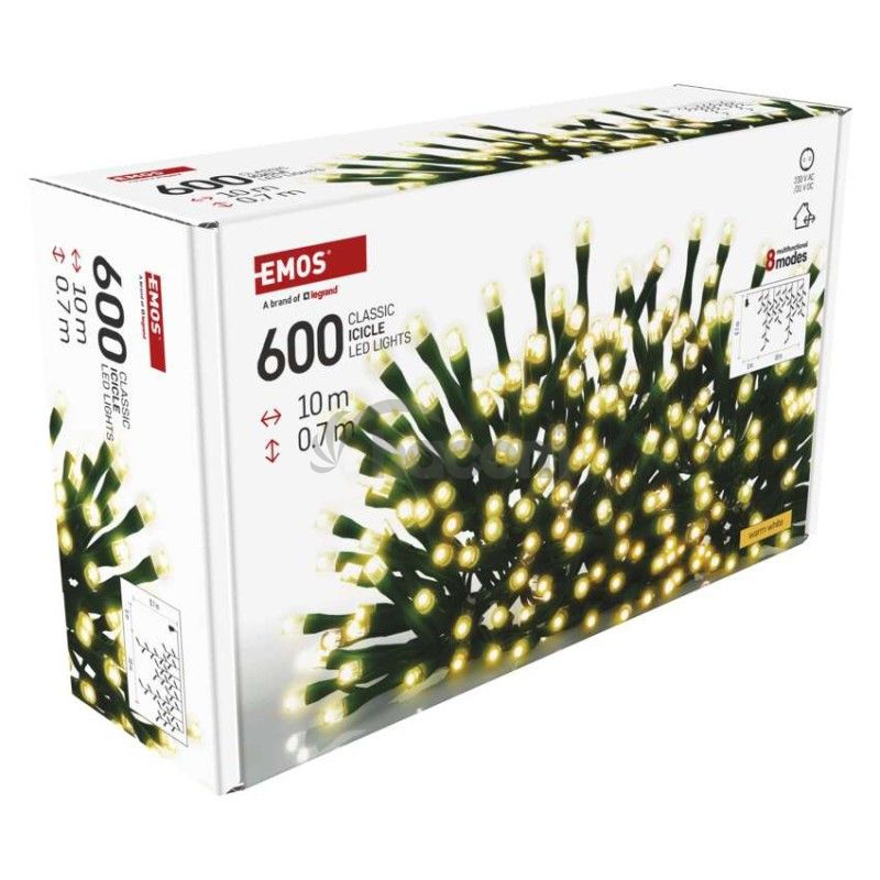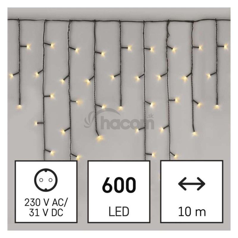 - LED vianočné cencúle, 10 m, vonkajšie aj vnútorné, teplá biela, programy, časovač D4CW03