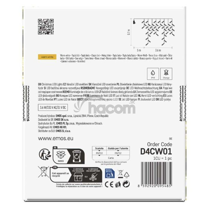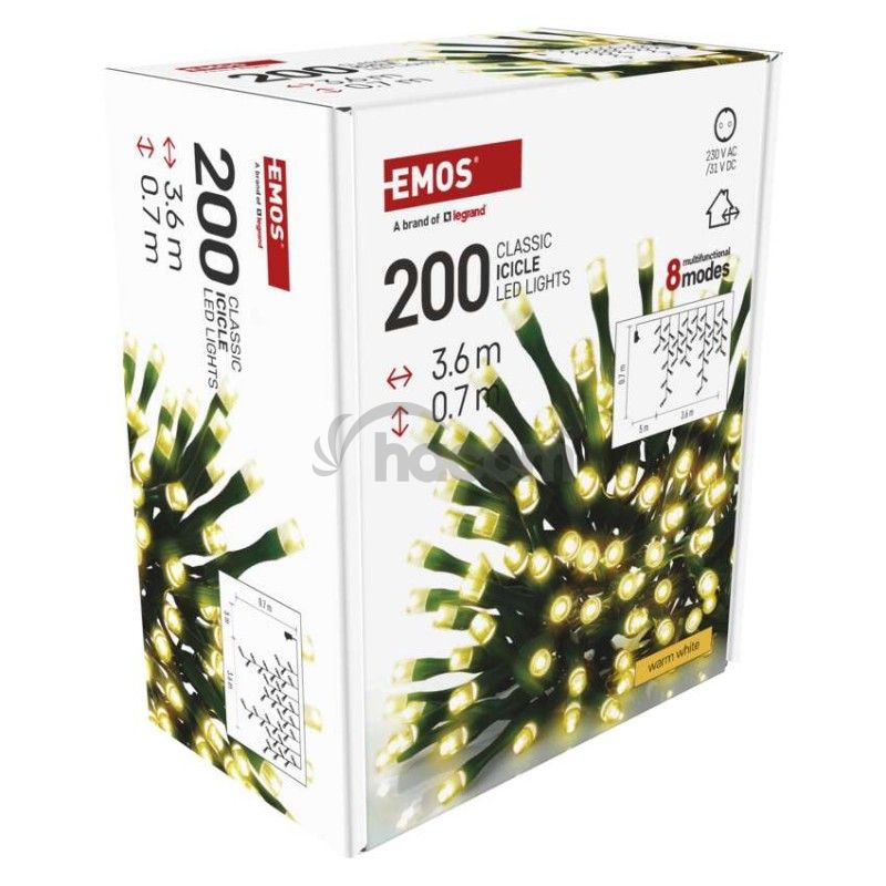 - LED vianočné cencúle, 3,6 m, vonkajšie aj vnútorné, teplá biela, programy, časovač D4CW01