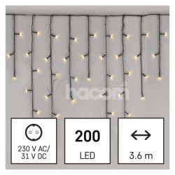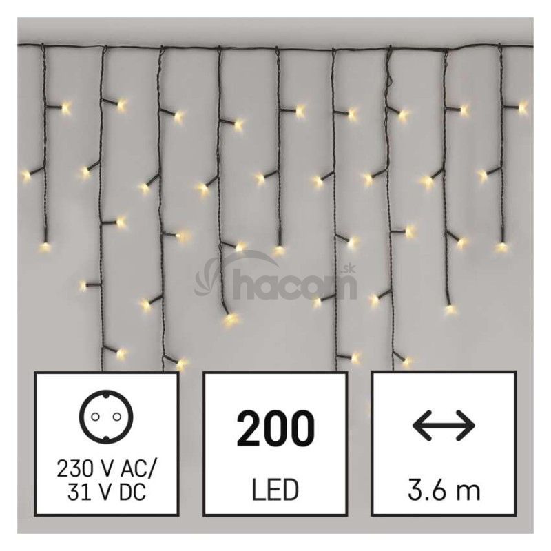 LED vianočné cencúle, 3,6 m, vonkajšie aj vnútorné, teplá biela, programy, časovač D4CW01