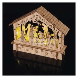 - LED vianočný betlehem drevený, 15 cm, 2x AA, vnútorný, teplá biela, časovač DCWW34