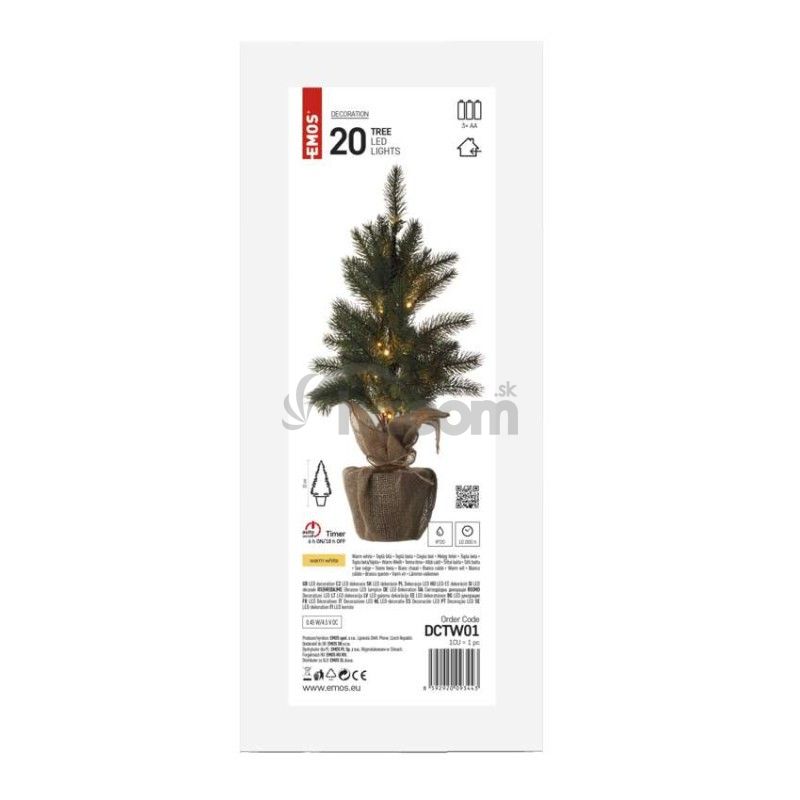 - LED vianočný stromček, 52 cm, 3x AA, vnútorný, teplá biela, časovač DCTW01