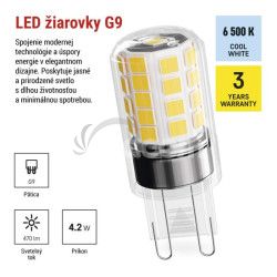 - LED žiarovka Classic JC / G9 / 4,2 W (40 W) / 470 lm / Studená biela / 2 ks 2ks ZQ9E24.2