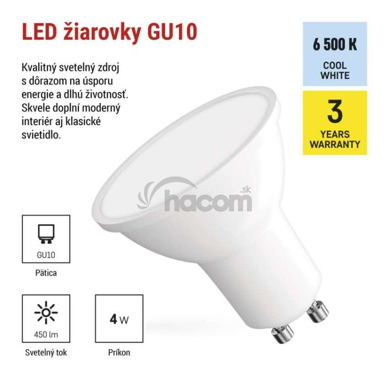 - LED žiarovka Classic MR16 biela/ GU10 / 4 W (39 W) / 450 lm / Studená biela ZQ8E24