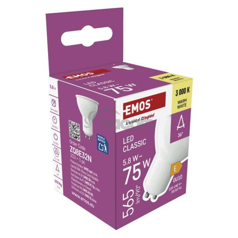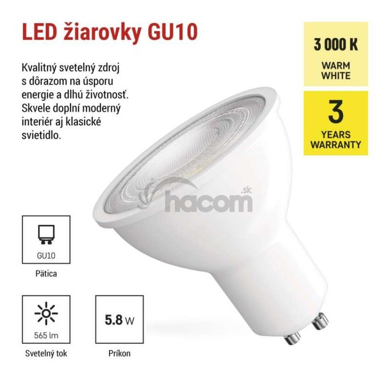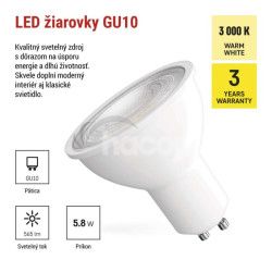 - LED žiarovka Classic MR16 biela/ GU10 / 5,8 W (75 W) / 565 lm / Teplá biela ZQ8E32N