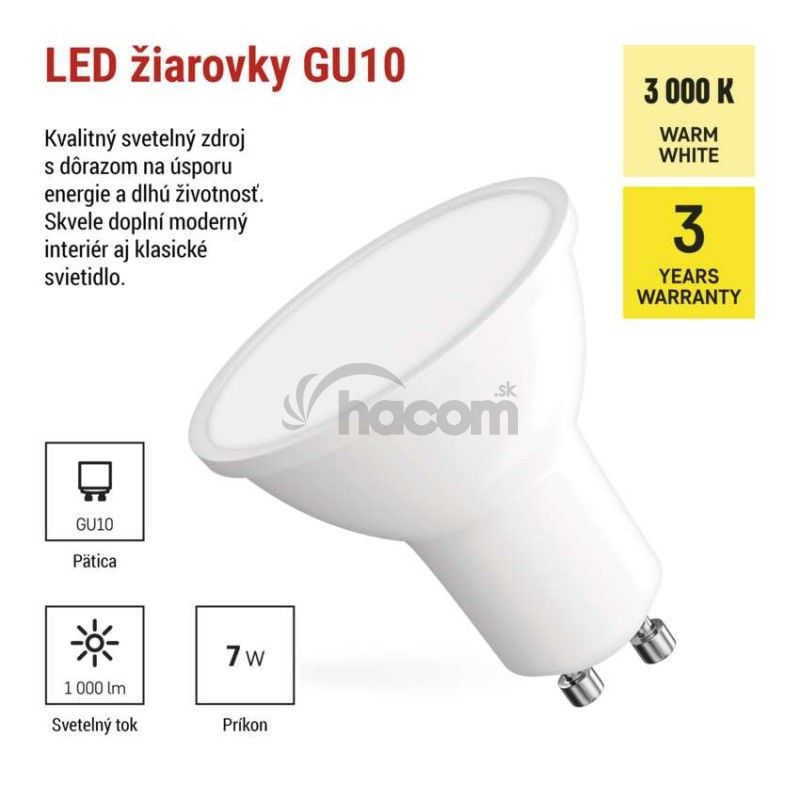 - LED žiarovka Classic MR16 biela/ GU10 / 7 W (72 W) / 1000 lm / Teplá biela ZQ8D62