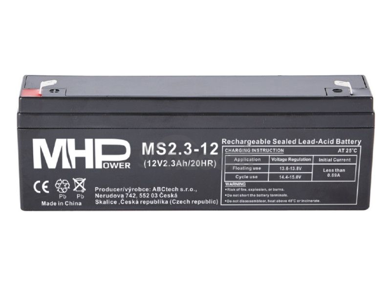 - MHPower MS2.3-12 olověný akumulátor AGM 12V/2.3Ah, MS2.3-12
