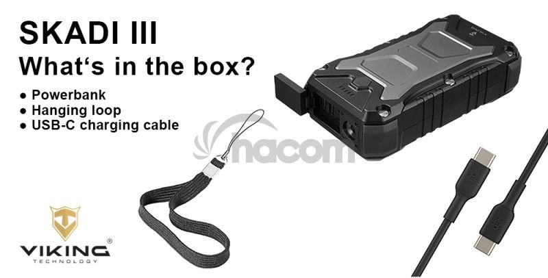 Outdoorová powerbanka Viking SKADI III je vyrobená z odolného materiálu (ABS+PC), ktorý znesie náročné podmienky v prírode. Vodeodolné (IP66) a nárazuvzdorné prevedenie znamená, že ju môžete bezpečne používať pri turistike, kempovaní, horolezectve alebo iných aktivitách. Navyše Vám outdoorová Powerbanka ponúkne dostatok energie pre vaše najpotrebnejšie zariadenia, ako sú napríklad GPS navigácia, vreckové lampy, alebo nabitie vášho smartfónu v núdzi.