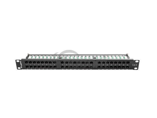 - PATCH PANEL 48 PORTOV 1U 19" CAT.6 UTP ČIERNY LANBE PPU6-1048-B