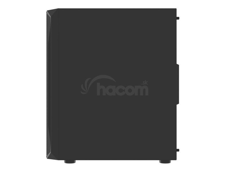 Futuristický geometrický tvar sa bude páčiť ako hardcore hráčom, tak aj tým, ktorí dávajú prednosť decentnejšiemu dizajnu. Ľavý bočný panel z tvrzeného skla je príležitosťou na odhalenie vnútrajška skrine a výkonných komponentov ukrytých vo vnútri - tiež s RGB, najmä preto, že inštalovaný ventilátor je predsvietený.