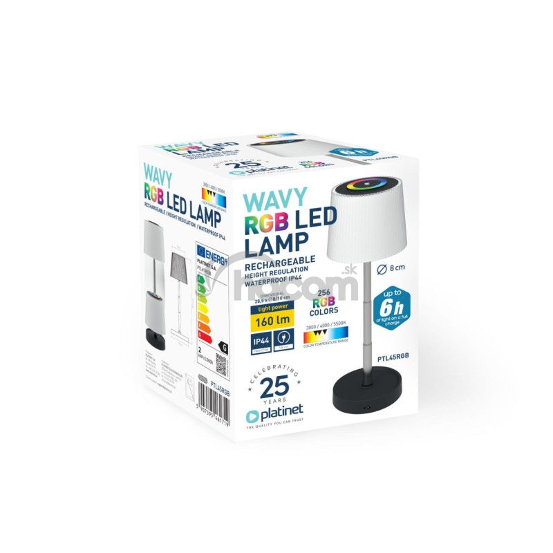 - Platinet PTL45RGB stolná LED lampa stmievateľná, dotykové ovládanie, integrovaná batéria 1200mAh, čierny PLATL45RGB
