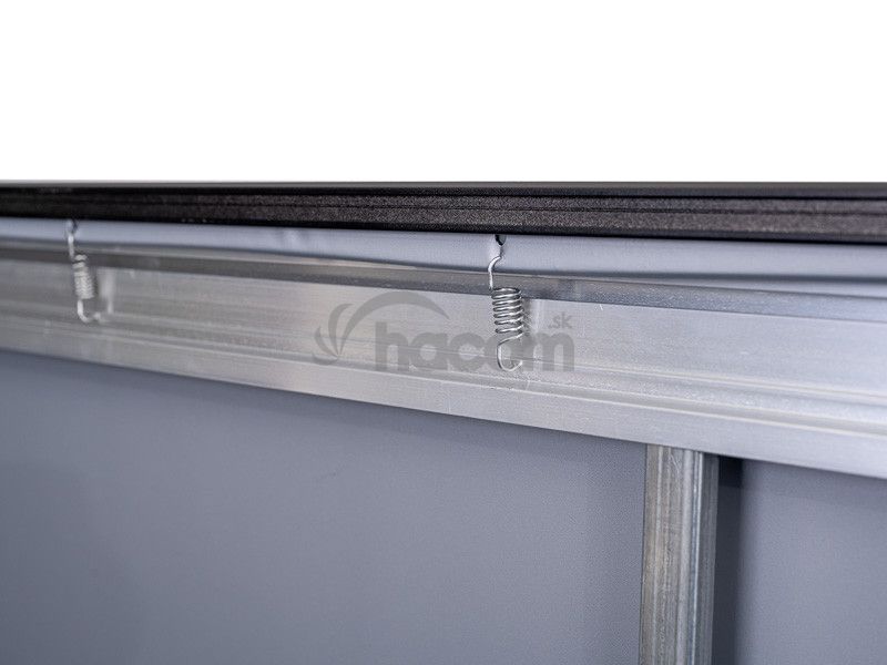 Rám plátna je potiahnutý čiernym semišom pre pohltenie okolitého svetla a vyniknutie farieb projekcie.