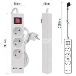 - Predlžovací kábel 2 m / 3 zásuvky / s vypínačom / biely / 1×USB-A + 1×USB-C / 1,5 mm2 P1312CU
