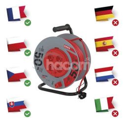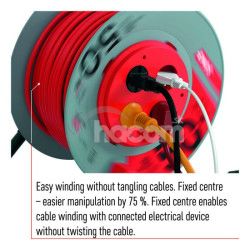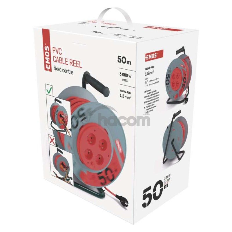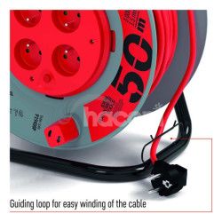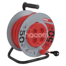 - Predlžovací kábel na bubne 50 m / pevný stred / 4 zásuvky / červený / PVC / 230 V / 1,5mm2 P19450P