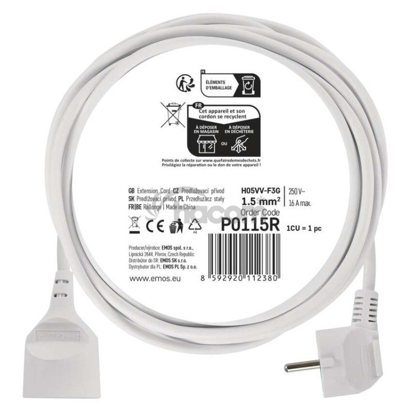 - Predlžovací kábel – spojka, 5m, biely P0115R