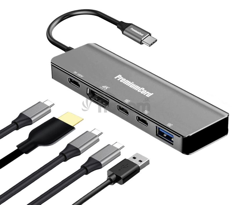 PremiumCord USB-C na 4K @ 60Hz HDMI + 10G USB3.2 A + 10G 2x USB-C + PD(power delivery) adaptérTento adaptér umožňuje vysoko kvalitný prevod videa a zvuku z USB-C konektora na 4K @ 60Hz HDMI konektor pre ďalší monitor/TV/projektor. Funguje ako externá grafická karta.