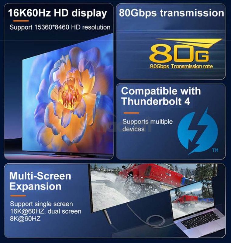 * Rozlíšenie videa 16K @ 60Hz, až 80Gbps (podporuje DisplayPort Alt Mode 2.0)